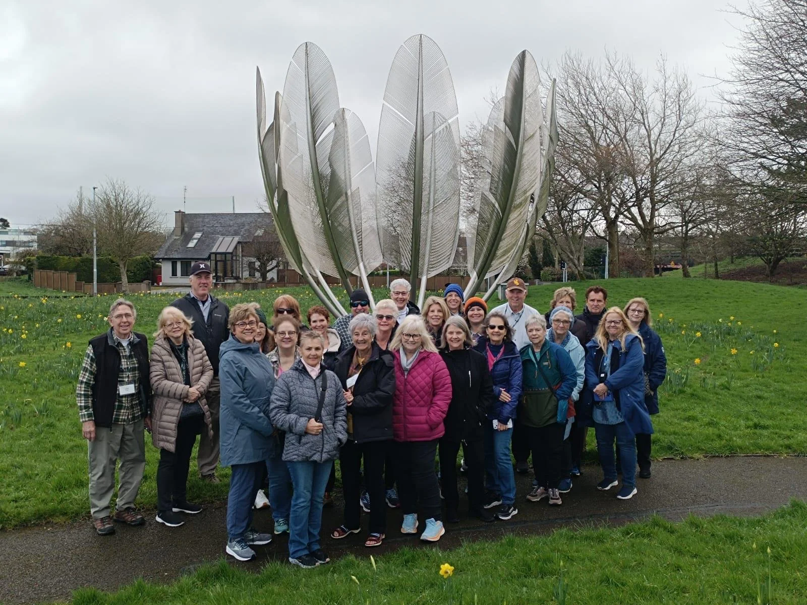 Thanks to Collette for making a special stop for these Oklahomans. The "Kindred Spirits" feather sculpture in Midleton, County Cork, Ireland, commemorates the generosity of the Choctaw Nation of Oklahoma, who donated money and grain to help starving Irish people during the Great Famine of 1847. The sculpture features nine stainless steel eagle feathers forming a bowl to symbolize a gift of food and the bond between the two cultures.